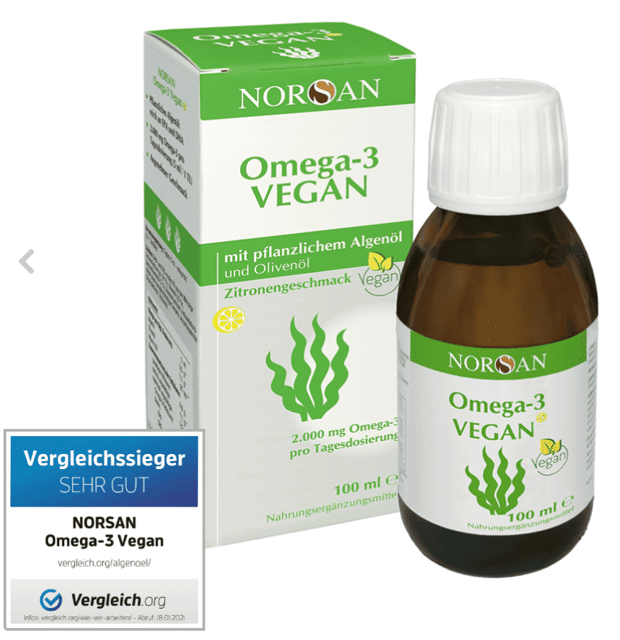 Das Omega-3 Vegan (100 ml) besteht aus einer einzigartigen Kombination: einem pflanzlichen, hochdosierten Algenöl sowie einem kaltgepressten Olivenöl aus kontrolliertem biologischen Anbau mit hohem Gehalt an Polyphenolen.